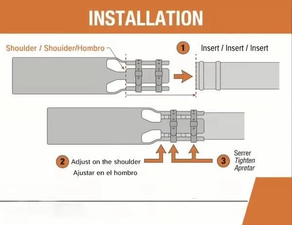 Make sure to fit it over the shoulder as illustrated in point 2. The shoulder is the widened part of the Leaf Blower Air Booster that should fit snugly over your blower nozzle. Ensure the Leaf Blower Air Booster is properly centered and positioned before proceeding.