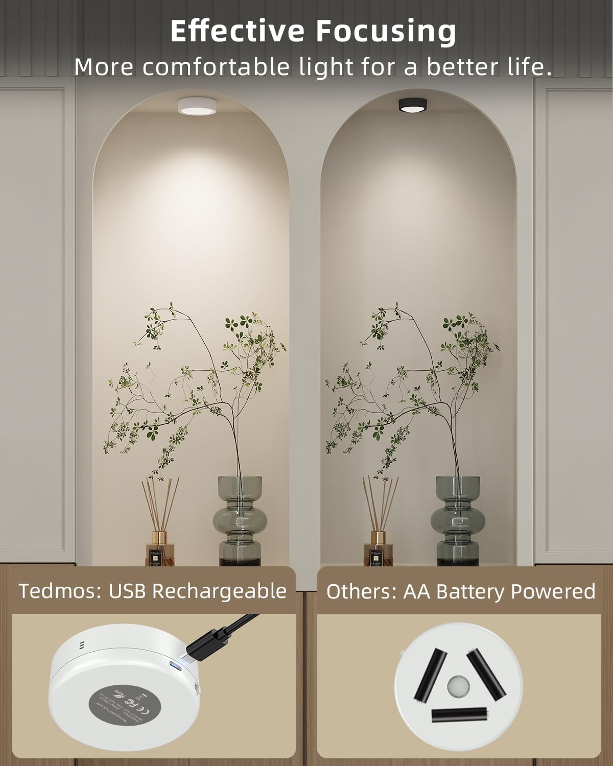 - 【ABOUT TEDMOS】"Simple Light, Simple Life""perfectly sums up what we've been doing at Tedmos since 2018. We believe the good design is never complicated. At Tedmos, we want to help you add beauty and functionality to your home in the easiest and most cost-effective way. This stick on lights for closet with remote control is both practical and beautiful. We hope this usb rechargeable puck lights with remote control can become your new friends, just simply stay around and bring you happiness.